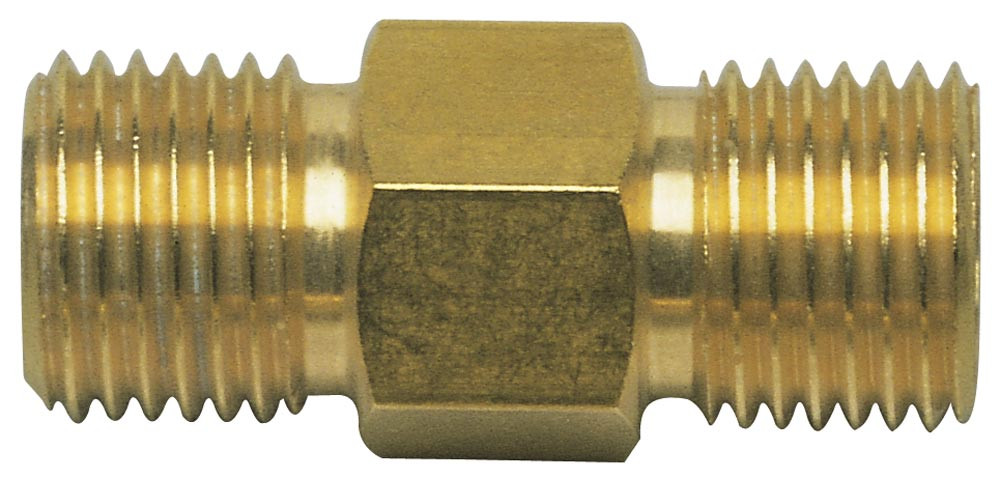 Ausführung: Verbindungsnippel aus massiv Messing nach EN 560 ∙ Zwei Außengewinde mit einem Außenkonus von 37°