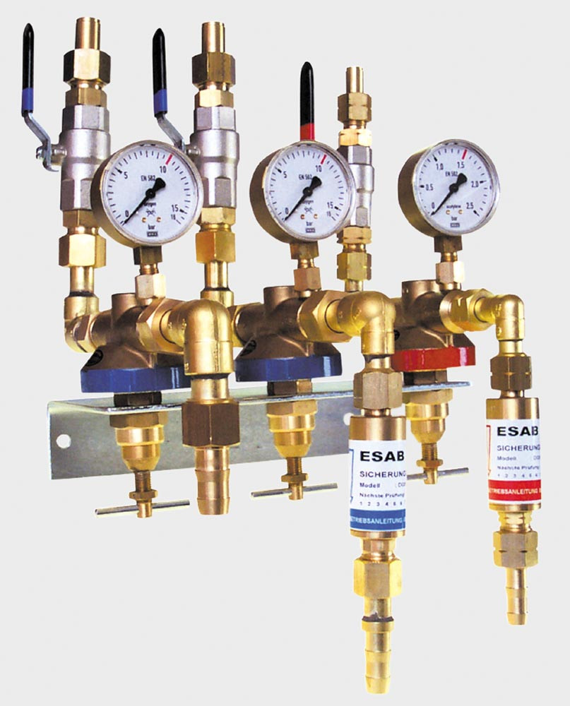 Ausführung: Komplette Entnahmestelle "mittelgroß" für Schneidsauerstoff ∙ Durchsätze bis 100 m3/h ∙ Brenngas wahlweise Acetylen oder Propan/Erdgas ∙ Mögliche Anzahl der Maschinenschneidbrenner in Verbindung mit Materialdicken: 1 Brenner - 300 mm, 4 Brenner - 200 mm