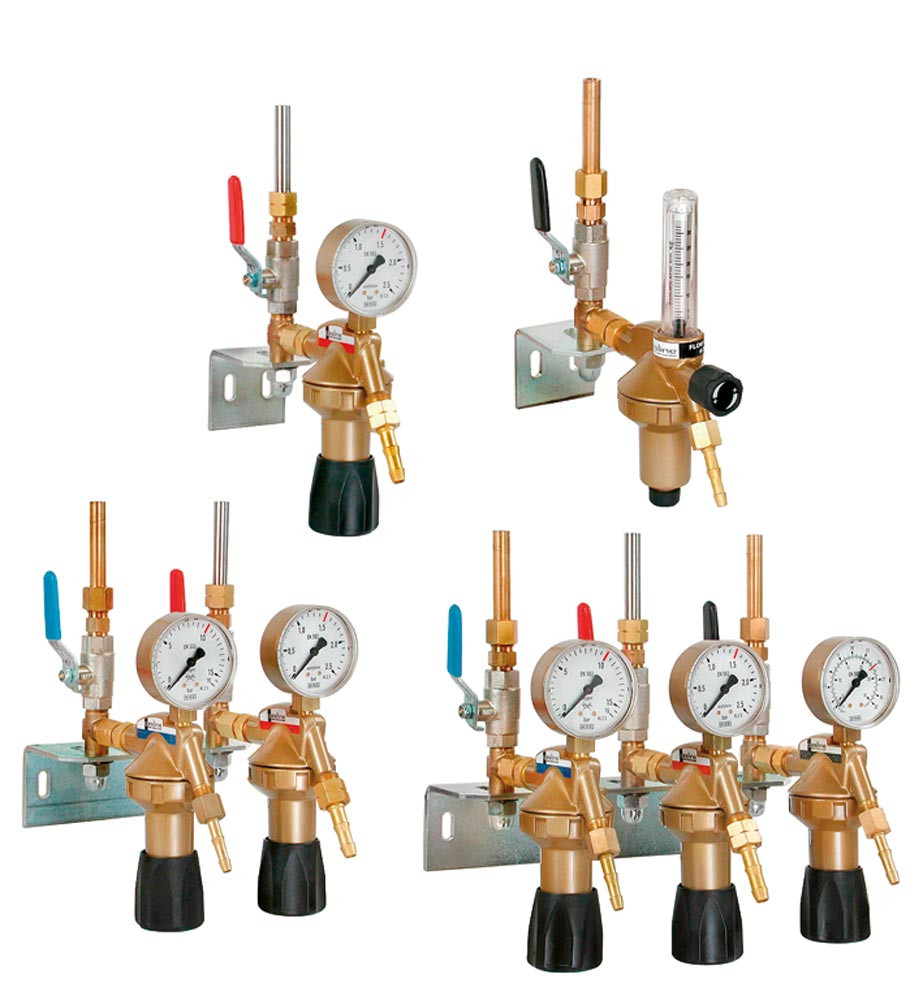 Ausführung: Entnahmestellen für technische Gase ∙ Hohe Betriebssicherheit durch kompakte Bauweise mit wenigen Verschraubungen ∙ Wartungsfreundlich, nur wenige auswechselbare Teile ∙ Lieferung komplett mit Druckminderer, Kugelhahn, Wandkonsole, Löt- und Schweißstutzen 12 mm und Überwurfmutter G3/8"