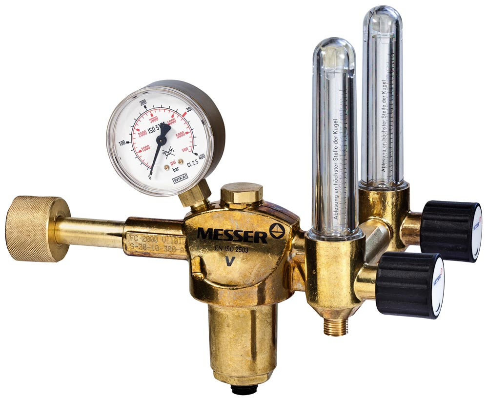 Flaschendruckminderer 300 bar, Argon 32l/min, G 1/4 Zoll, m. 2 Schwebekörpern
