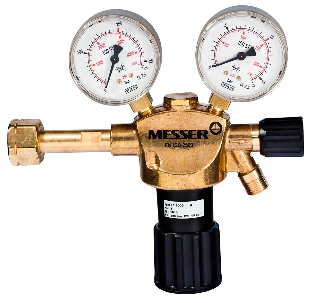 Anwendung: Bringen verdichtete, verflüssigte und unter Druck gelöste Gase aus Flaschen mit einem maximalen Vordruck von 200 bar auf den gewünschten Arbeitsdruck