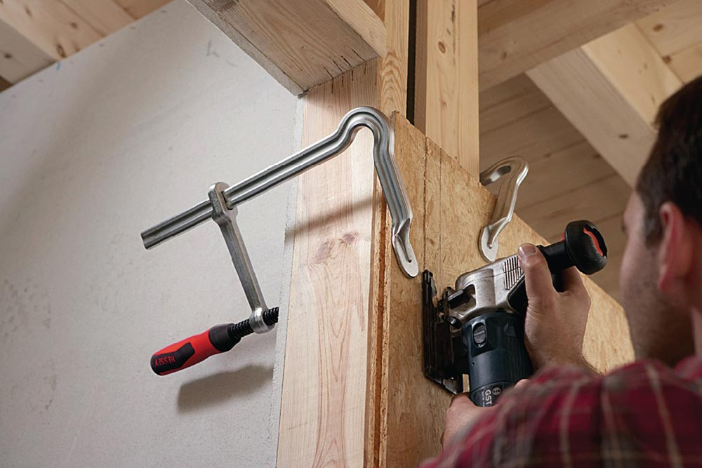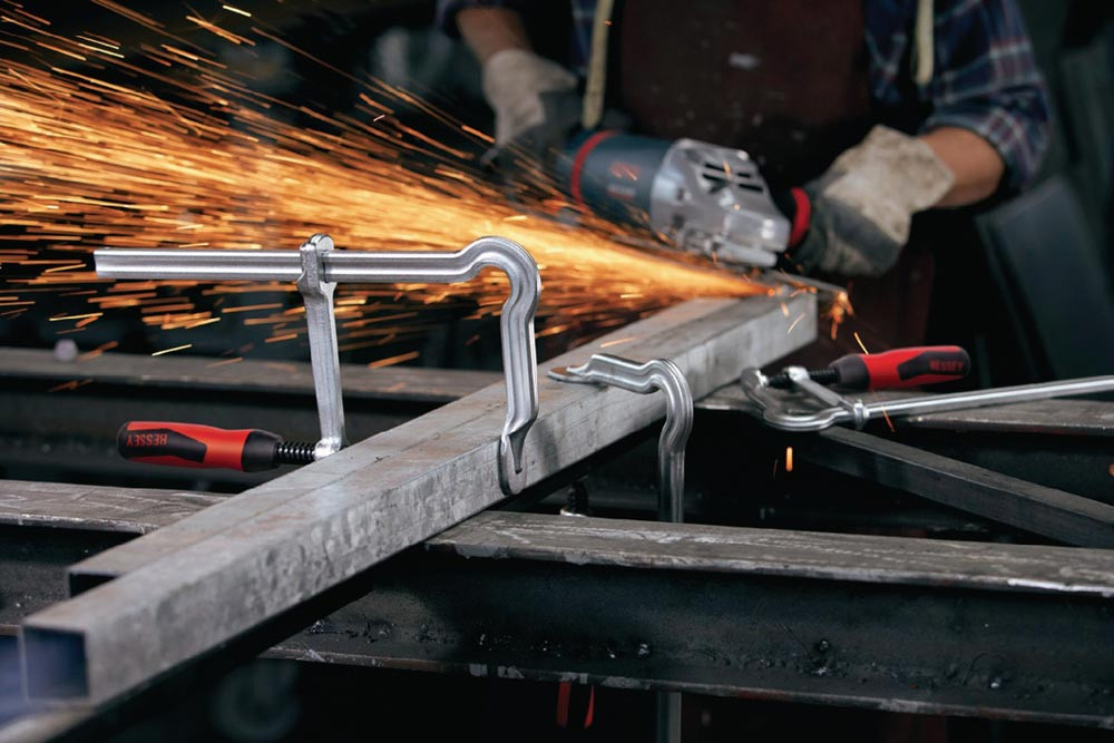 mit ergonomischem 2-Komponenten-Kunststoffgriff · wechselbare Druckplatte (werkzeuglos) · Schiene und Festbügel in einem Stück aus statisch optimiertem, kaltgezogenem Profilstahl · warmverformt, vergütet und galvanisch verzinkt · Gleitbügel aus Vergütungsstahl im Gesenk geschmiedet, vergütet und galvanisch verzinkt · Spindel mit leichtgängigem Trapezgewinde · Spannkraft bis zu 5000 N · Besondere Produktvorteile: