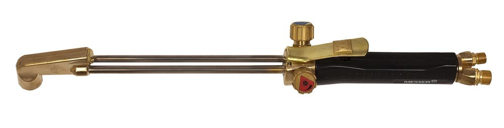 Massive Bauart, Brennerkopf, Federhebel und Monoblockventile aus Messing - resistent gegen Umwelteinflüsse ∙ Hohe Stabilität durch Edelstahlrohre in Dreieckverbund ∙ Austauschbare Monoblock-Einstellventile mit Stellsymbolen ∙ Besonders gut dosierbares Schneidsauerstoffventil in Federhebel-Ausführung ∙ Griffschalen aus Metall, kunststoffbeschichtet, ergonomisch gestaltet, griffig, beste Handhabung ∙ Schneidbereich 3-500 mm nach EN/ISO 5172 ∙ Mit 95°-Brennerkopf für Ringdüsen, Schlitz- und Blockdüsen mit Injektor im Brennerkopf oder für gase-