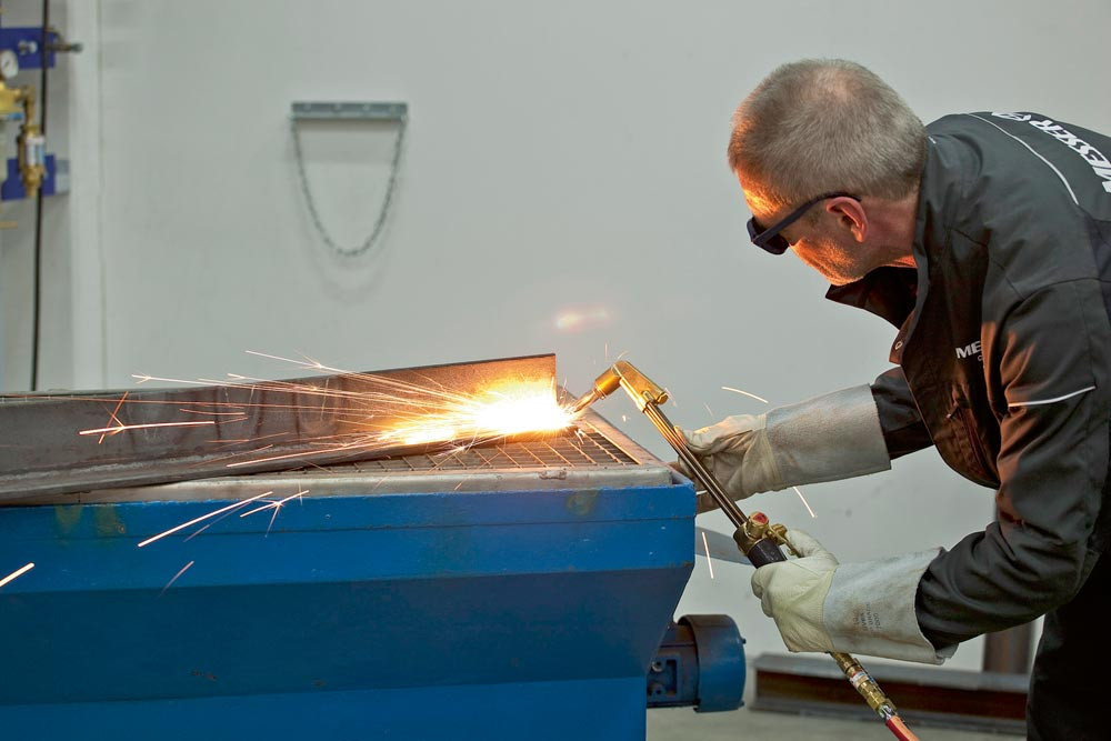 Massive Bauart, Brennerkopf, Federhebel und Monoblockventile aus Messing - resistent gegen Umwelteinflüsse ∙ Hohe Stabilität durch Edelstahlrohre in Dreieckverbund ∙ Austauschbare Monoblock-Einstellventile mit Stellsymbolen ∙ Besonders gut dosierbares Schneidsauerstoffventil in Federhebel-Ausführung ∙ Griffschalen aus Metall, kunststoffbeschichtet, ergonomisch gestaltet, griffig, beste Handhabung ∙ Schneidbereich 3-500 mm nach EN/ISO 5172 ∙ Mit 95°-Brennerkopf für Ringdüsen, Schlitz- und Blockdüsen mit Injektor im Brennerkopf oder für gase-