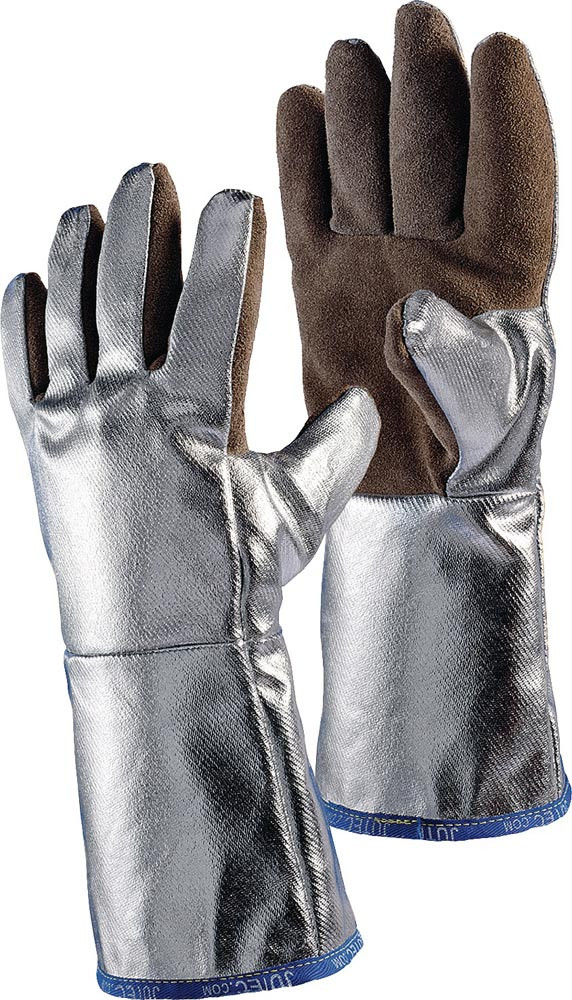 Hitzeschutzhandschuhe 5-Fingerhandschuh 10 braun/silber Spaltleder m.alumin.Preox-Aramidgewebe EN 388, EN 407 PSA-Kategorie III