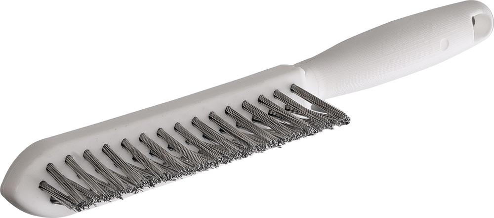 glatter Draht · für die Lebensmittelindustrie · zur Reinigung von Oberflächen · zur Reinigung von Küchenutensilien · entspricht der Hygienecharta des FEIBP · V-Besatz · mit lebensmittelechtem Kunststoffgriff