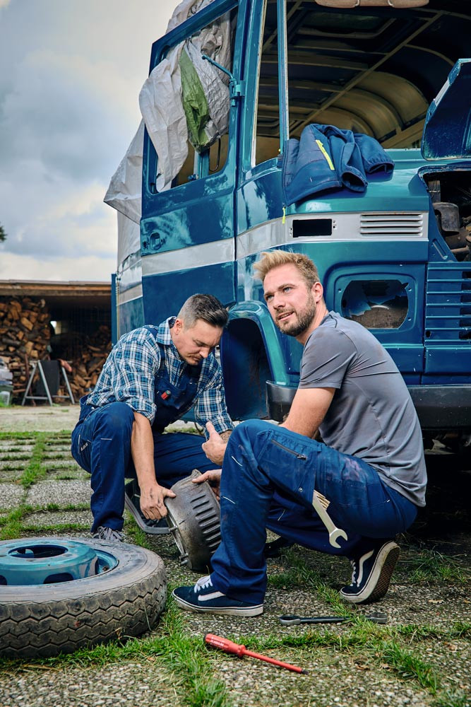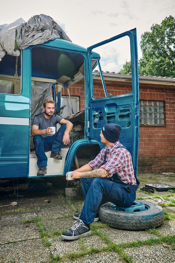 Material 64% Baumwolle, 33% Polyester, 3% Elastan, ca. 265g/m2 ∙ Latztasche mit Patte und Klett ∙ Träger mit elastischem Gummieinsatz ∙ hochgezogenes Rückenteil mit Trägerkreuz ∙ Zwei eingesetzte Beuteltaschen ∙ Oberschenkeltasche links mit Patte und aufgesetzter Tasche mit Reißverschluss ∙ Oberschenkeltasche rechts mit gelbem Reißverschluss ∙ Zwei Gesäßtaschen mit Patten und Klett ∙ Reißverschluss im Hosenschlitz ∙Jeansknöpfe im Bund ∙ Reflexapplikation an rechter Oberschenkeltasche