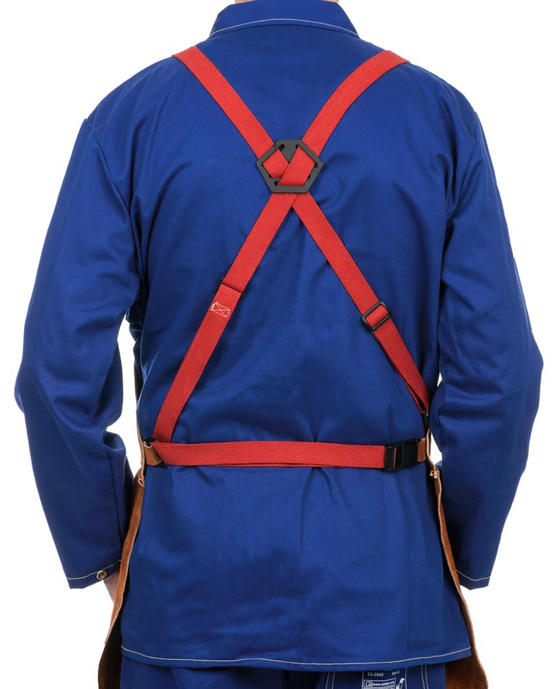 Zertifiziert nach nach EN ISO 11611:2015, Klasse 2 A1+A2, TÜV BP 60126846 0001 und TÜV 21285003 001 ∙ Aus langlebigem und geschmeidigem Spalt-Rindleder (aus der Seite hergestellt) ∙ Hitze- und feuerbeständig ∙ Ledernähte mit Doppelkettenstich aus extrem hitzebeständigem 5-fachen KEVLAR®-Garn vernäht ∙ Alle Spannungspunkte genietet oder mit doppeltem Leder verstärkt ∙ Farbe Lava Brown™