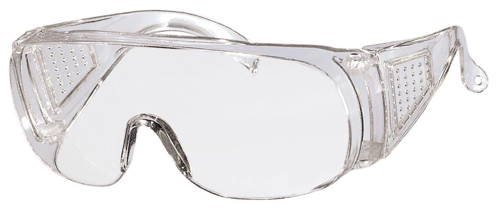 Aus farblosem Kunststoff ∙ Leichte Ausführung mit integriertem Seitenschutz, auch zum Tragen bei Korrektionsbrillen geeignet ∙ Mit farblosen Kunststoffgläser DIN P