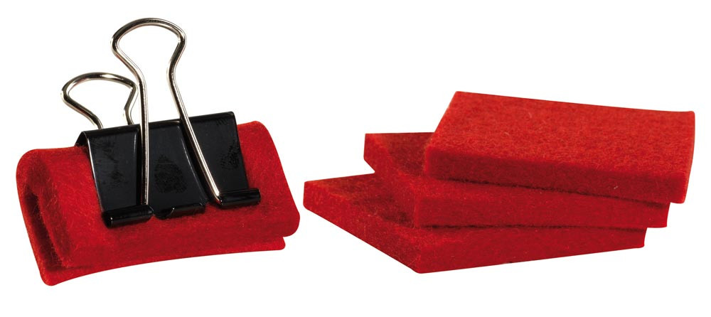 Reinigungsfilz Set für Stahl, Farbe rot, 1 Halteklammer + 4 Filze