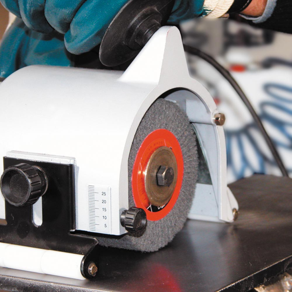 Anwendung: Für den Einsatz auf Satiniermaschinen ∙ Zum Feinschleifen von ebenen und gewölbten Oberflächen, zum Innen- und Außenschleifen von Behältern etc. ∙ Für die Bearbeitung von Stahl, rostfreiem Stahl, NE-Metall, Kunststoff, Marmor oder Holz etc.