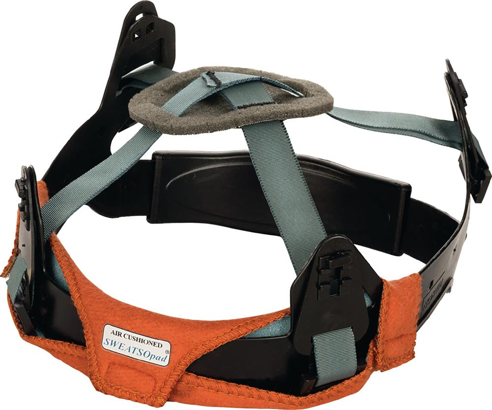 EN 11611 · kombiniertes Helmpolster und Schweissband · nie wieder Helmkopfschmerzen, nie wieder Abrutschen, nie wieder Schweiss · das Weldas SWEATSOpad® verhindert „Helmkopfschmerzen“ und verbessert den Helmsitz · das SWEATSOpad® ist flammenhemmend für zusätzliche Sicherheit · es ist hergestellt aus einer luftdurchlässigen Innenschicht und einer 100% Baumwoll-Außenschicht · durch den Klettverschluß läßt es sich auf gängigen Helmträger befestigen · TÜV (TÜV Rheinland) geprüft: 21120493 001