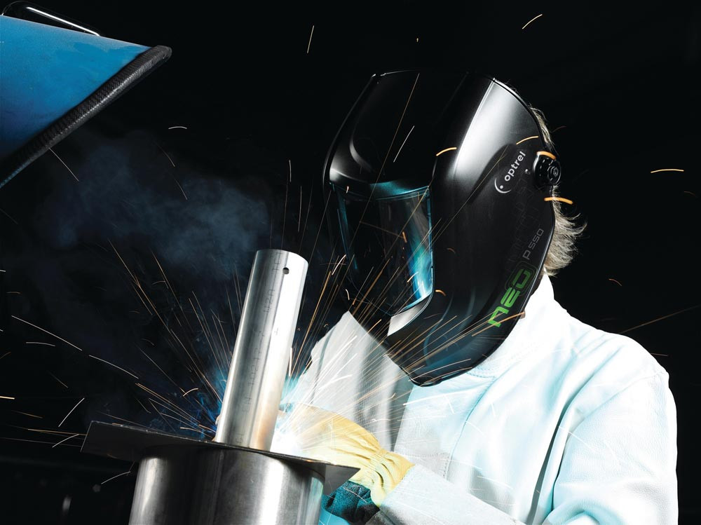 EN 379 · automatische Blendschutzkassette mit Schutzstufenauswahl von 4/9-13 · stufenlos einstellbar mittels Drehknopf · stufenlos einstellbare Empfindlichkeit und Öffnungsverzögerung · Umschaltzeit hell-dunkel 0,1 ms bzw. dunkel zu hell 0,05-1 s stufenlos einstellbar · mit IR-/UV-Filter und farbechter Sicht · Komfort-Kopfband · Klassifizierung: 1/1/1/2 · Batterielebensdauer 3000 h · Anwendung: für alle elektrischen Schweißverfahren
