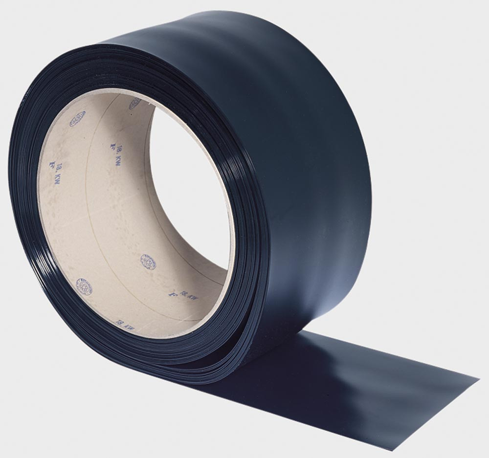 Ausführung: Entsprechend der gewünschten Überlappung zugeschnitten und gelocht ∙ Die einzelnen Lamellen an der Längsseite gerundet ∙ Aufhängung erfolgt mittels Pendelschalen oder Schwingschellen ∙ Material ist schwer entflammbar, Klasse 1, gemäß DIN 53438 T2 ∙ Max. Lieferlänge 50 m/Rolle