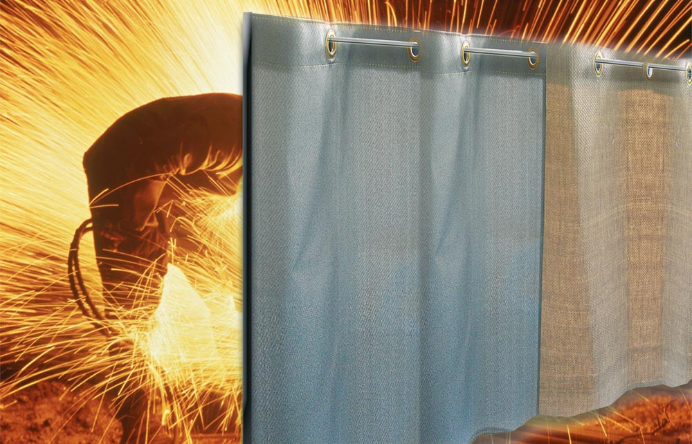 Schweißervorhang aus E-Glasgewebe JT 600 HT, Größe+Ausführung (Ösen/Ringe) lt. Kundenangabe