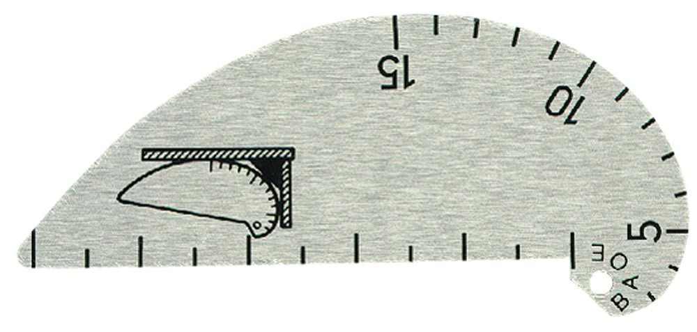 Anwendung: Zum Messen von Kehlnähten - kurvenförmiger Teil berührt an drei Punkten Werkstück und Kehlnaht, geradliniger Teil mißt Überhöhungen von Stumpfnähten