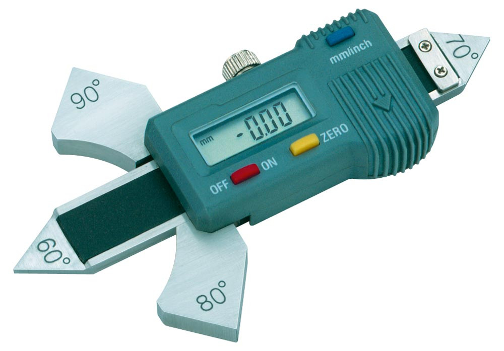 Ausführung: Aus rostfreiem Stahl, gehärtet und geschliffen ∙ Mit Winkel 60°, 70°, 80° und 90° ∙ Praktischer Ein-/Ausschalter ∙ Messwertanzeige in großem LCD-Display ∙ Umschaltbar von Millimeter auf Zoll ∙ Ablesegenauigkeit +/- 0,01 mm ∙ Gewicht 70g