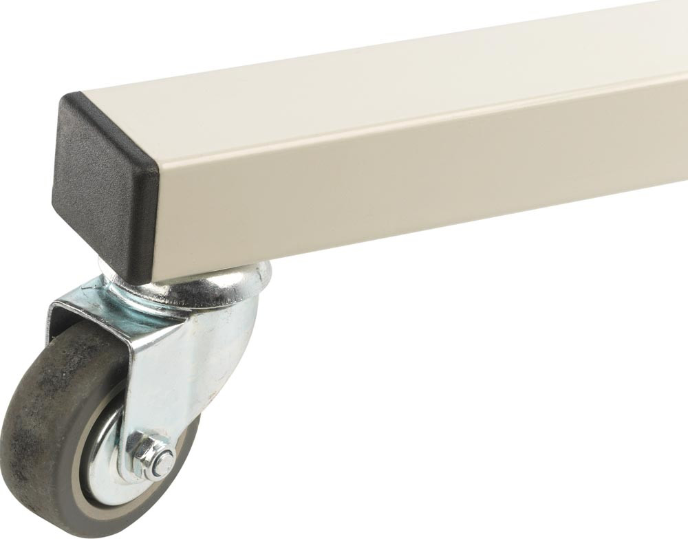 Ausführung: 1-teilige Schutzwand nach DIN EN ISO 25980 geprüft ∙ Mit 4 Standard-Lenkrollen Ø 50 mm, davon 2 Lenkrollen mit Bremse und 2 ohne ∙ Rundrohr Ø 30 x 2,5 mm, Vierkantprofil 40 x 30 x 2 mm ∙ RAL 7035, graue Pulverbeschichtung ∙ Lieferung inklusive Vorhang